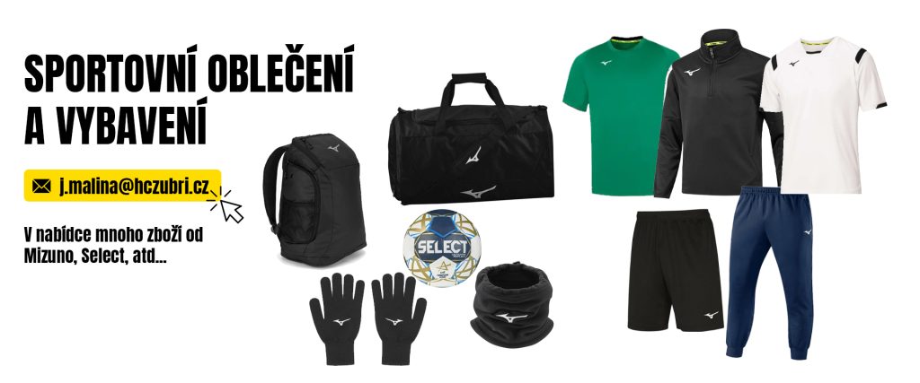 Fanshopové zboží je k dostání na každém domácím utkání nebo po domluvě v kanceláři sekretariátu klubu (j.malina@hczubri.cz)